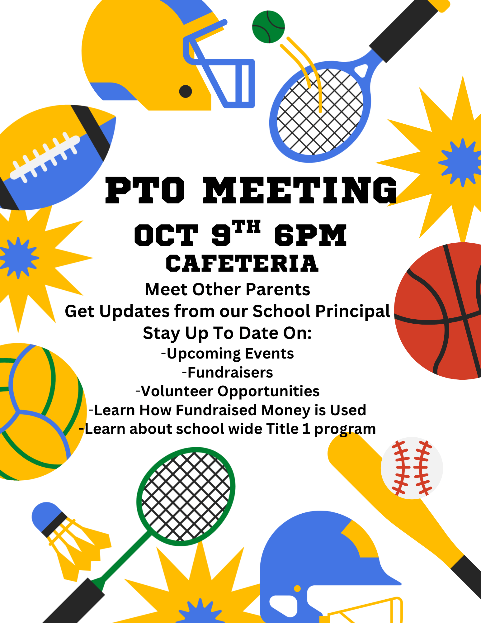 Meet at 6pm in the Cafeteria. Food and Babysitting provided.